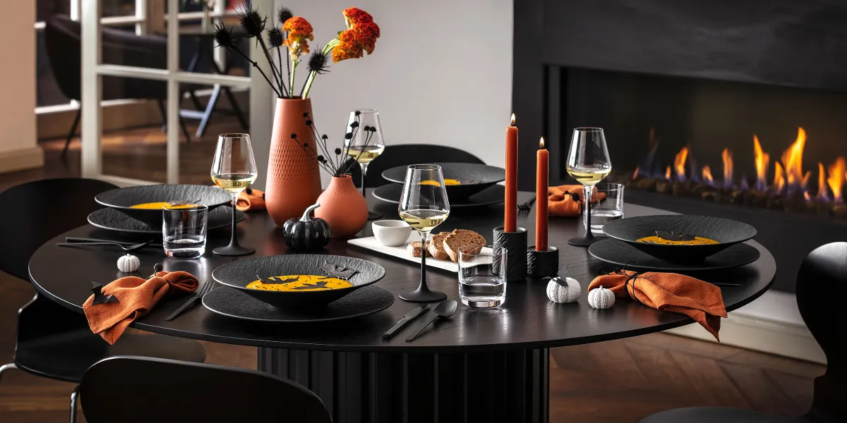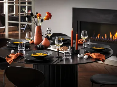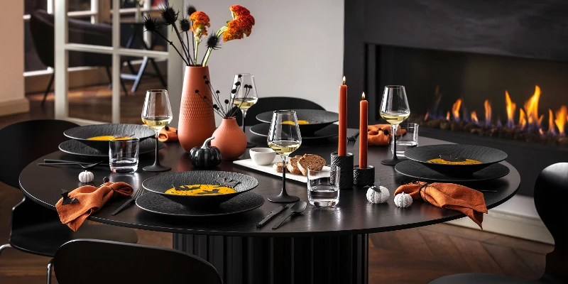 The Manufacture Rock collection offers dinnerware, glassware, and home décor with chic matte accents and slate-like textures. Available in midnight black or ghostly white, this premium German porcelain adds a sophisticated edge to any table setting. Whether you’re hosting an intimate autumn gathering, a Halloween feast, or simply elevating everyday dining, Manufacture Rock brings a striking balance of elegance and versatility.