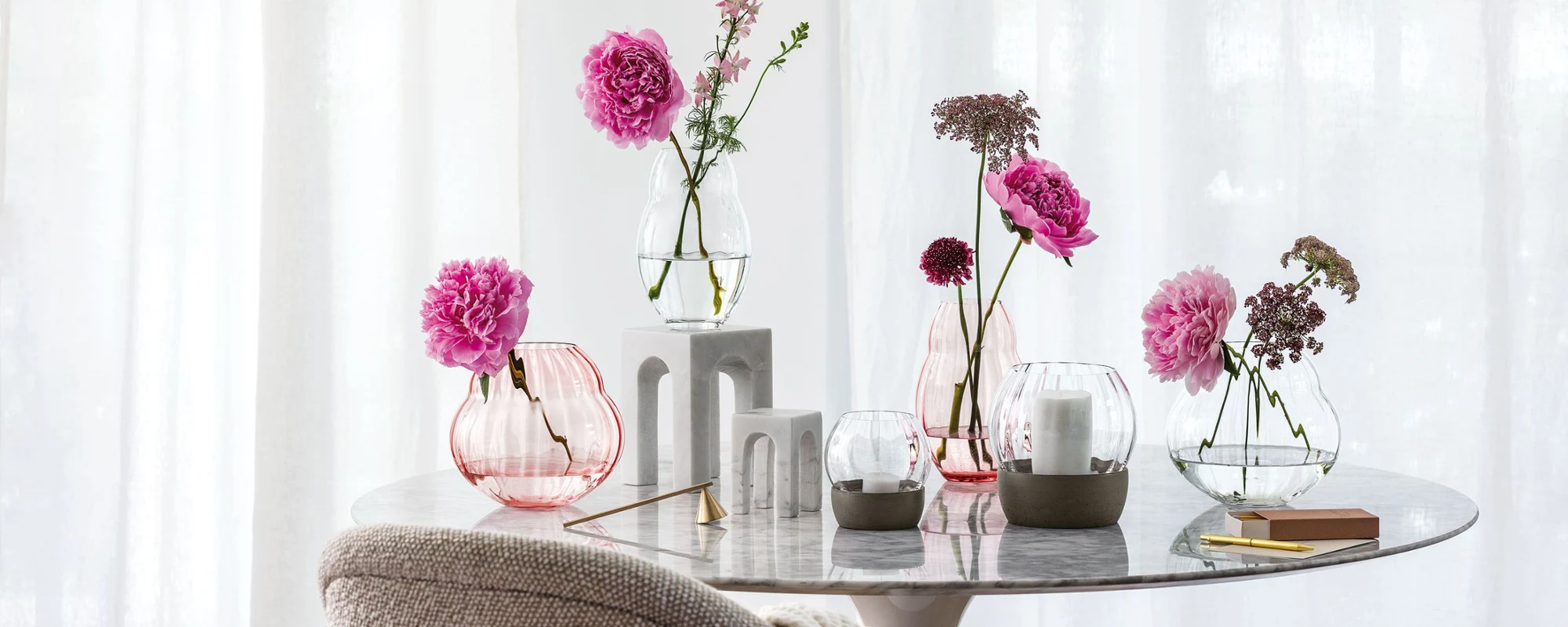 The length and number of flowers must suit the vase. The shape, opening size and color of the vase affects the overall impression. The Lave collection offers vases in different shapes and in subtle colors. You can find the right vase for many types of bouquet here.