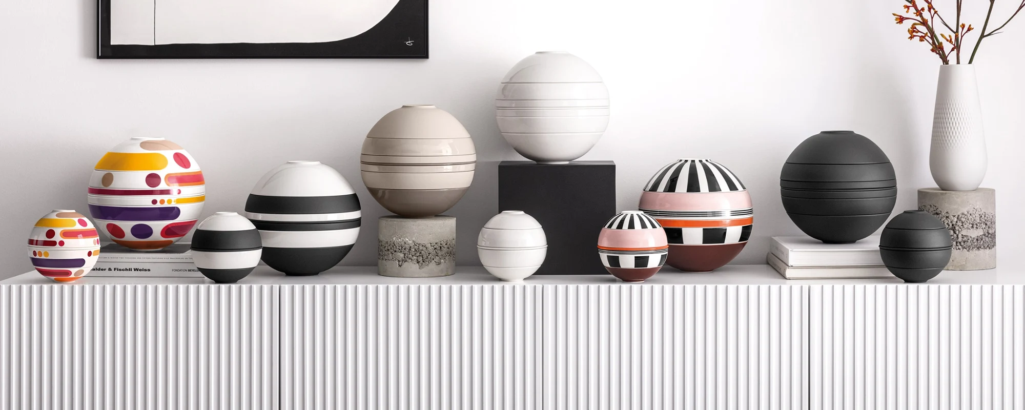 The first iteration of La Boule debuted back in 1971 and was designed by Helen von Boch, Contemporary Artist and 8th-generation family member. Before its debut, nothing like La Boule had ever been done before; it was considered avant-garde. As a 19-piece tablesetting, La Boule was an extreme challenge to create, as blanks typically become smaller during the firing stage of the production process—it was difficult to get all pieces to shrink to the same size. In 2020, La Boule was reintroduced with a more streamlined and sleeker design, made of only 7 pieces. Now, we’re continuing the story with La Petite Boule, a miniature version of this design icon, featuring five pieces (four bowls/dip bowls and one appetizer plate)--perfect for stylish snacking.